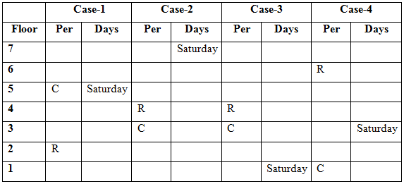 - Only two persons are living between the one who attend the meeting on Saturday and R, who lives on one of the even numbered floors.