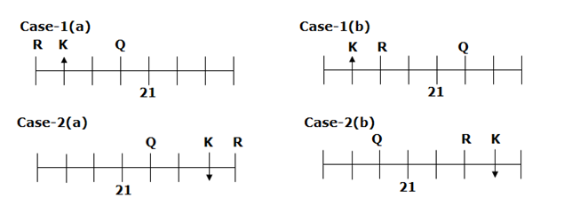 • The one whose age is 21 years sits third to the right of K, who sits second from the either ends of the row. Two persons are sitting between Q and R, who is an immediate neighbour of K.