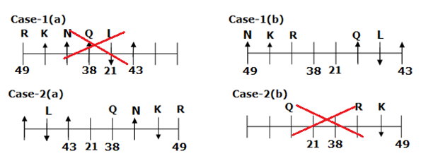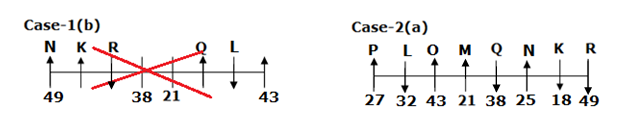 The one whose age is 21 years sits third to the right of K, who sits second from the either ends of the row. Two persons are sitting between Q and R, who is an immediate neighbour of K. The one whose age is an prime number sits to the immediate left of L, who does not face north direction. Both the immediate neighbours of L are faces the same direction. Only two persons are sitting between the one whose age is 38 and the one whose age is 49, who sits at one of the extreme ends of the row. As many persons sitting to the left of the person whose age is 43 is same as many persons sitting to the right of N. M and R faces opposite directions (If one person faces north, then the another one faces south and vice-versa). The one whose age is multiple of 5 sits second to the right of M. Three persons are sitting between O and the youngest person. L’s age is not in odd number.