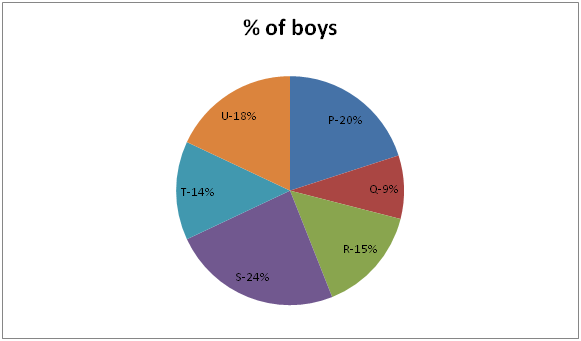 The pie chart shows the percentage distribution of number of boys in six different schools.