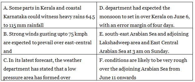 C-E:In its latest forecast, the weather department has stated that a low pressure area has formed over south-east Arabian Sea and adjoining Lakshadweep area and East Central Arabian Sea at 3 am on Sunday.
