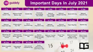 Important Days in July 2021: Candidates preparing for competitive exams can refer to the National and International Important Days in July 2021 with Themes. Study and memorize these Important Days in July 2021 for the current affairs section. Candidates should prepare the List of important days with themes of each month for the competitive exams. Here we provide the list of important days in July 2021 at India & International levels. This article on important days in July month of 2021 deals in detail with all the special days that fall in July. Important Days are celebrated to raise awareness about something very important for us. Check the list of Important Days in July 2021 here.