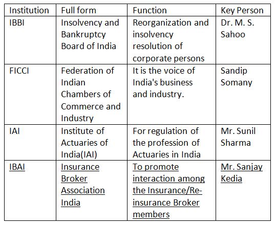 IBAI is an IRDAI recognized apex body of licensed Insurance Brokers. Additional information about other institutions is given in the following table: