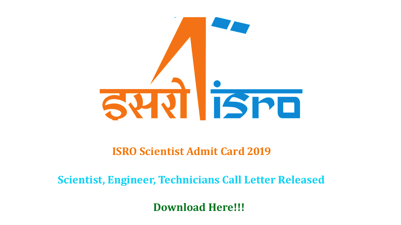 ISRO Scientist Engineer Admit Card 2019: ISRO Scientist Engineer SC Admit Card 2019 Released!!! Direct link available here to download…