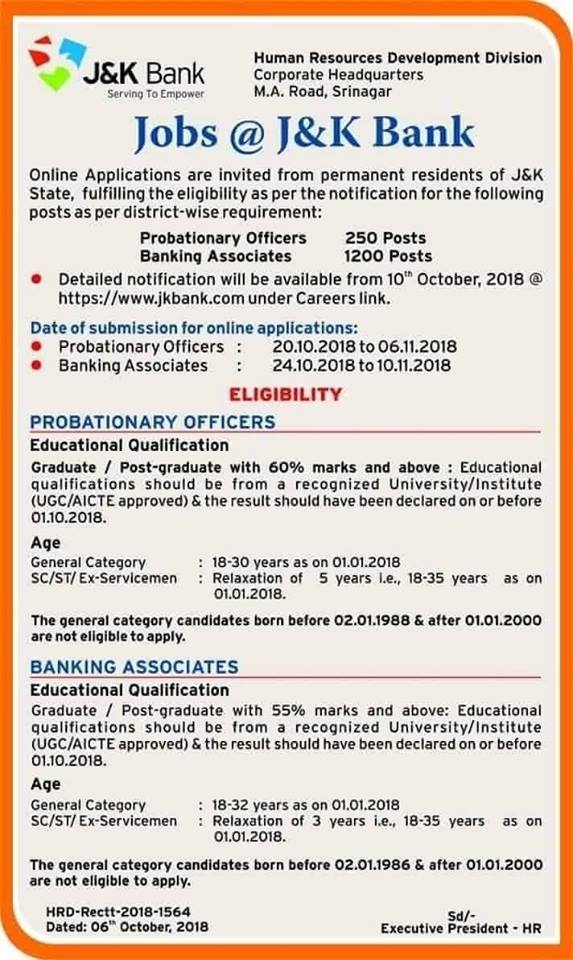 Download JK Bank Notification 2019 | Click Here |