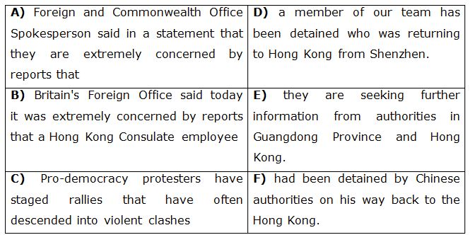 (A-D): Foreign and Commonwealth Office Spokesperson said in a statement that they are extremely concerned by reports that a member of our team has been detained who was returning to Hong Kong from Shenzhen.
