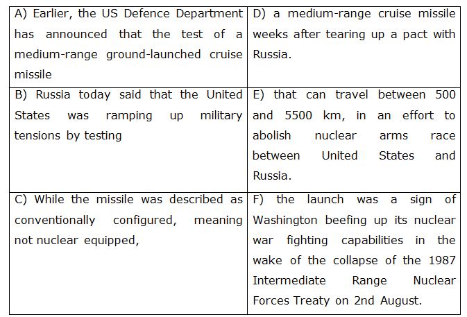 (C-F): While the missile was described as conventionally configured, meaning not nuclear equipped, the launch was a sign of Washington beefing up its nuclear war fighting capabilities in the wake of the collapse of the 1987 Intermediate Range Nuclear Forces Treaty on 2nd August.