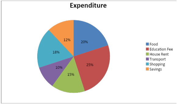 The given pie chart shows the Expenditure of family in different requirements in 2018