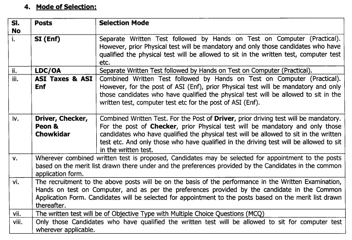 | Job Role | Sub Inspector, Assistant Sub Inspector, LDC (Office Assistant cum Computer Operator), Driver, Checker, Peon, Chowkidar |