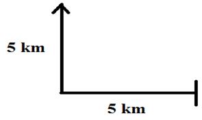 7) Shakthi starts walking from a point towards west 5km, then turns right and walks 5km. Now at what distance she is from the starting point?