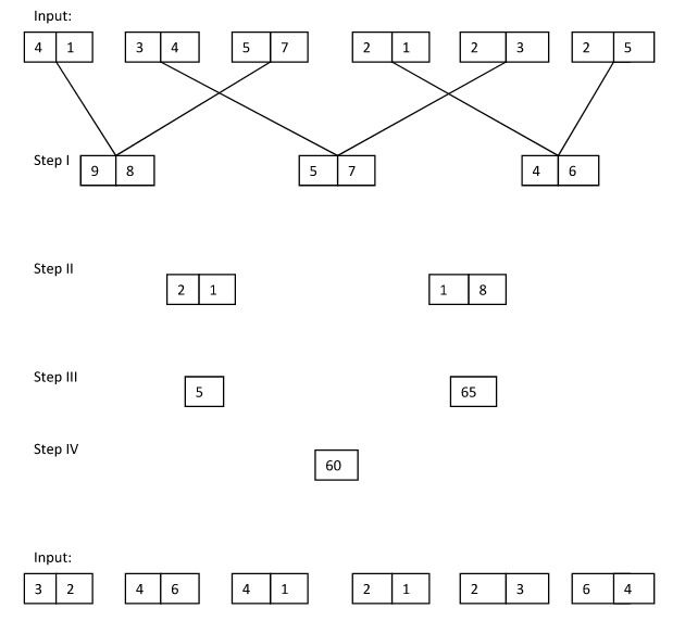 A number arrangement machine arranges two digit numbers into a typical manner. Each step gives output taking input from the previous step. The following is an illustration of Input and rearrangement. Using the illustration answer the question given below.