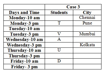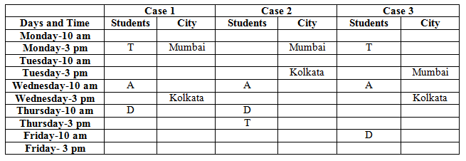 • Only three students have a seminar between T and the one who likes Kolkata.