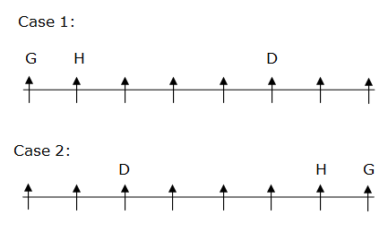 - G sits at the middle of the table but standing in one of the extreme ends of the line.