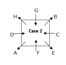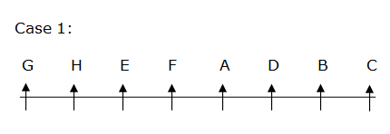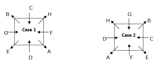 Eight persons-A, B, C, D, E, F, G and H are sitting in a square table. The four of them sits at the corner of the table facing outward and rest of them sits at the middle side of the table facing center. These eight persons are made to stand in a line facing north.