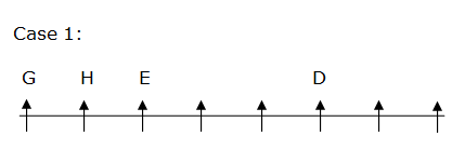 - E sits at one of the corner of the table and facing the one who standing immediate left of him in the linear