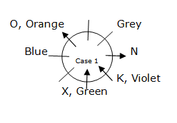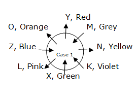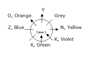 Eight persons-K, L, M, N, O, X, Y and Z are sitting in a circular table. Four of them facing center and four of them are facing outward of the table. Each of them likes different colors, viz. Red, Green, Yellow, Blue, Violet, Orange, Grey and Pink, but not necessarily in the same order.