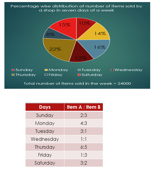 Q3. Find the respective ratio of total number of item A sold in Thursday, Friday and Saturday together and total number of item B sold in Monday, Tuesday and Wednesday together.