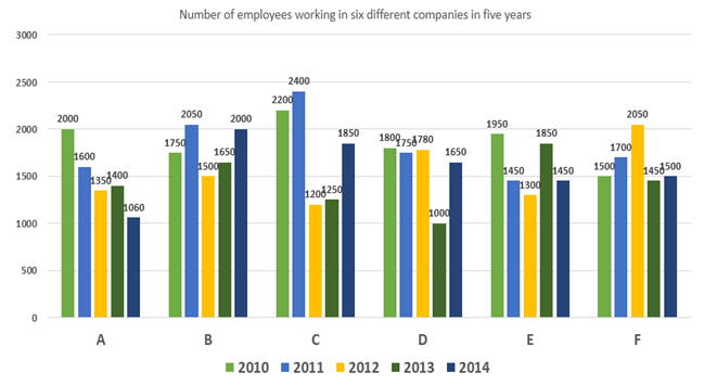 - What is the difference between total number of employees working in company B in all the years together and that in D in all the years together?