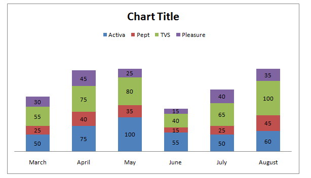 Monthly sales turnover (in lakhs) of Various scooters like Activa, Pept, TVS and Pleasure from March 2017 to August 2017.