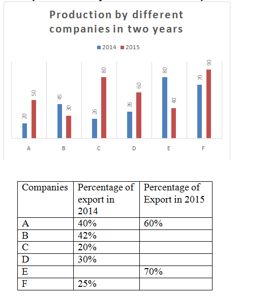 - The average number of mobiles exported by company D and F in 2015 is 35000 while the mobiles exported by company D in 2014 is twice the export in 2015 then find percentage of export by company F out of total production of company F in 2015?