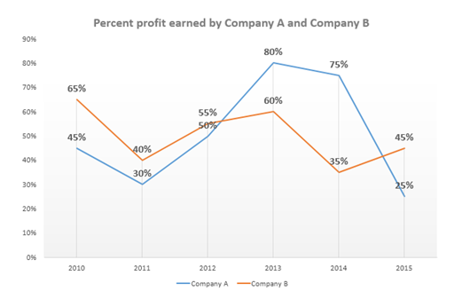 - Total percent profit earned by company A over all the years is what percent of total percent profit earned by company B over all the years?