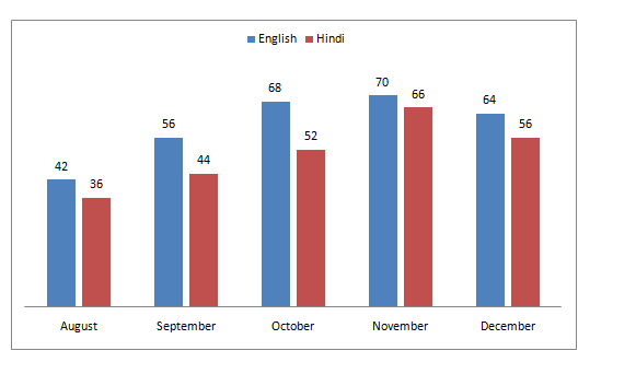 - Find the difference between the total English newspaper readers to that of total Hindi newspaper readers of all the given months together?