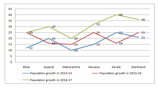 4) If the population of Maharashtra in the year 2014 was 8.5 lakh, then find the population of Maharashtra in the year 2017?