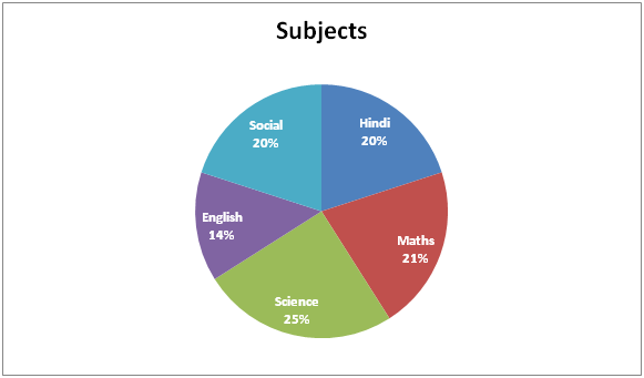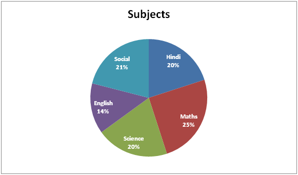 Following Pie chart1 shows the percentage of students passed in different subjects.