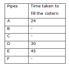 The following table represents time taken (in hours) by different pipes to fill a cistern. Some values are missing.