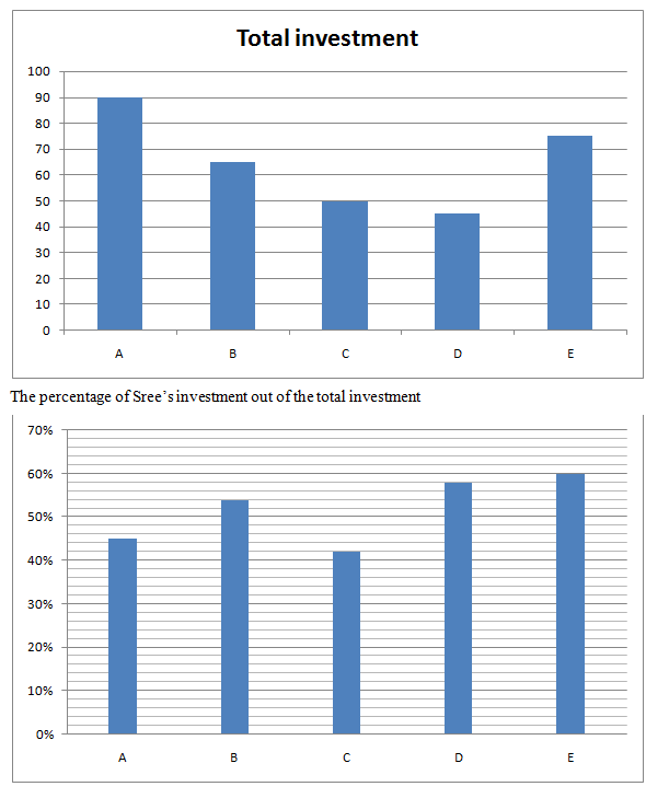 The following bar graph shows the total investment (In thousands) of Subha and Sree in 5 different schemes.