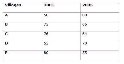 Directions (6-10): The Table given below shows the percentage of valid voters in 5 villages in two years 2001 and 2005. Study the graph carefully to answer the based questions.