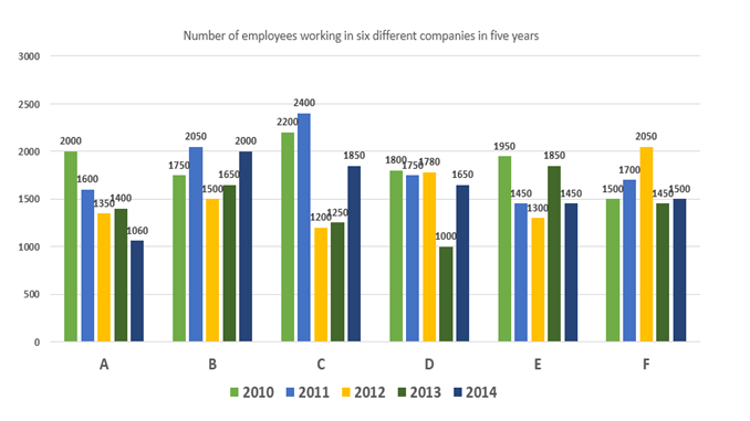 - What is the difference between total number of employees working in company B in all the years together and that in D in all the years together?