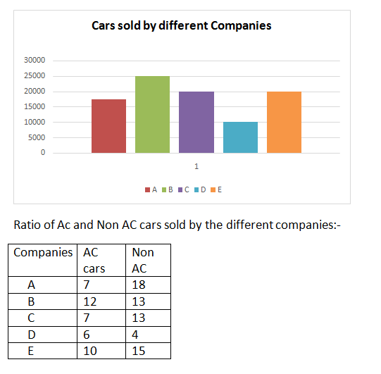 1. Find the average no of Non AC car sold by Company A,C,D,E.
