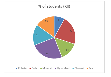 कोलकाता से कुल सम्मिलित छात्रों की संख्या= 440 * 10/25 = 176