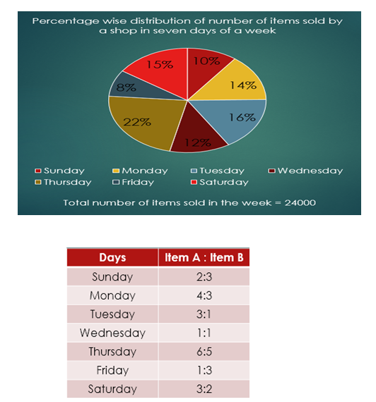1. सोमवार और मंगलवार को बेचे जाने वाले वस्तु A की कुल संख्या ,शुक्रवार और शनिवार को बेची गई वस्तु B की कुल संख्या से कितना प्रतिशत अधिक है?