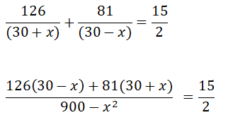 2 (3780 – 126x + 2430 + 81x) = 15 (900 – x2)