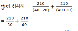 8) यह ज्ञात है कि दो– बिंदु M और N के बीच की दूरी 210 किमी है। नाव E, बिंदु M से N तक जाती है और वापस आती है। नाव E द्वारा कुल दूरी तय करने में लिया गया समय क्या है?