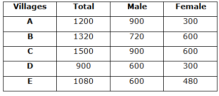 6) If the ratio of the number of male population to total number of literate population in A is 9: 8, then what is the difference between the illiterate population in village A and number of female in A?
