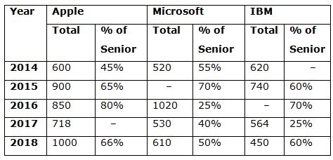 The following table shows the total number of employees in 3 different companies in 5 different years and the percentage of senior employees among them. Some values are missing here.