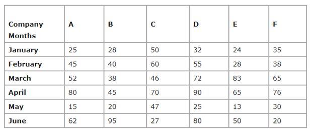 1. What is the average of investment made by company C in May, D in February and E in January (in lakh)?