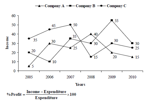 Income (in lakh Rs.) of three companies over the years: