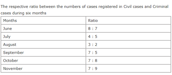 9) What is the respective ratio of the number of case registered in Criminal cases during June to those case registered during November of the same case?