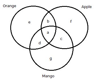 6) If 10% of the students like all the three fruits, find the number of students who like both Orange and Apple but not Mango.