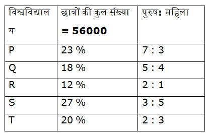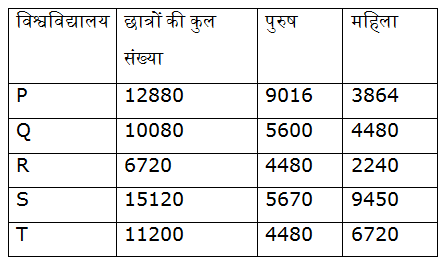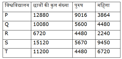 8) विश्वविद्यालय Q, R और T से एक साथ पुरुष स्नातकों की कुल संख्या और  विश्वविद्यालय P, R और S से एक साथ महिला स्नातकों के बीच का अनुपात ज्ञात कीजिए?