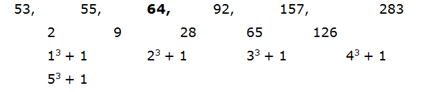 अंतर है, 13 + 1, 23 + 1, 33 + 1, 43 + 1, 53 + 1,….