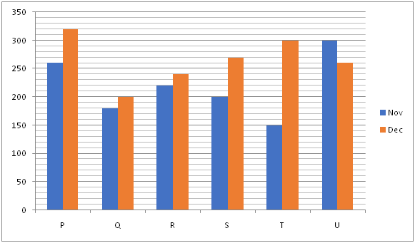 9) नवंबर के महीने में बैंक P, R और T एक साथ द्वारा जारी किए गए क्रेडिट कार्ड की औसत संख्या से दिसंबर के महीने में बैंक P, Q और U एक साथ द्वारा जारी किए गए क्रेडिट कार्ड की औसत संख्या के बीच अंतर को ज्ञात कीजिये?