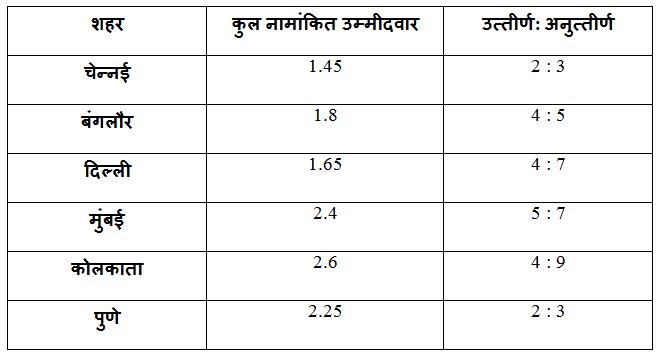दिल्ली और मुंबई से एक साथ परीक्षा में शामिल होने वालेउम्मीदवारों की कुल संख्या