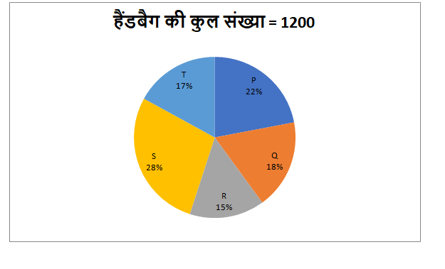 9) दुकान P और T एक साथ में हैंडबैग की कुल संख्या से दुकान Q और R एक साथ में हैंडबैग की कुल संख्या के बीच का अंतर ज्ञात कीजिये?