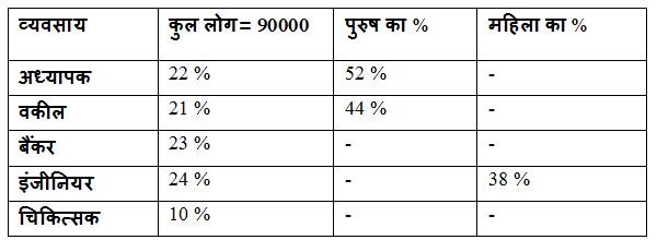 निम्न तालिका 5 अलग-अलग व्यवसायों में काम कर रहे लोगों की कुल संख्या का प्रतिशत और एक निश्चित शहर में पुरुषों और महिलाओं के प्रतिशत को दर्शाती है। यहां कुछ मूल्य लुप्त हैं।