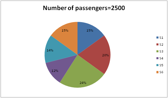 The given pie graph shows the number of passengers in 6 different coaches of train.